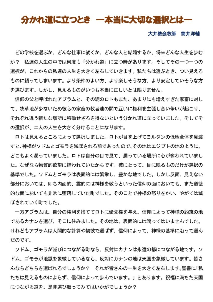 メッセージ:「分かれ道に立つとき ―本当に大切な選択とは―」