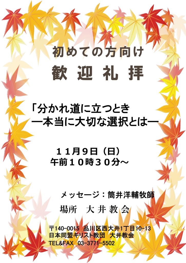 大井教会はこの西大井において92年主イエス・キリストの福音を伝えている福音派に属するプロテスタントの教会です。毎週日曜日に礼拝をおこなっています。特に初心者の方向けに毎月第3日曜に歓迎礼拝をおこなっています。どなたでも是非お越しください。
