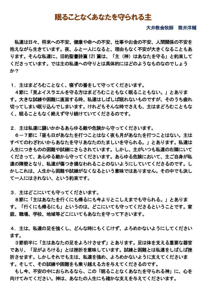 メッセージ:「取り除かれた神との隔て-十字架が開いた道」